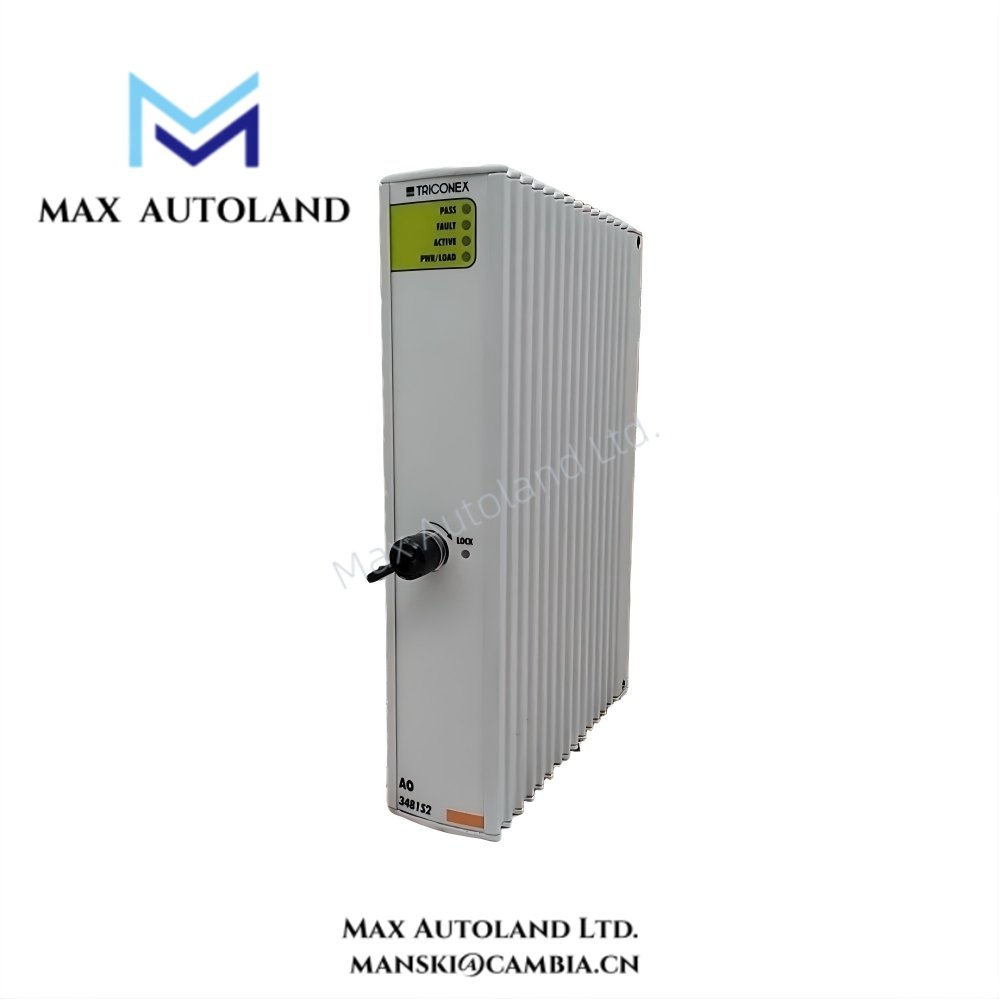 The AO3481 S2 analog output module from Triconex delivers precise analog signal control within Tricon safety instrumented systems. It provides stable 4–20 mA control outputs that drive actuators, valves, and process control equipment in industrial plants. Consequently, engineers deploy the AO3481 S2 in automation environments requiring high reliability and consistent output accuracy.