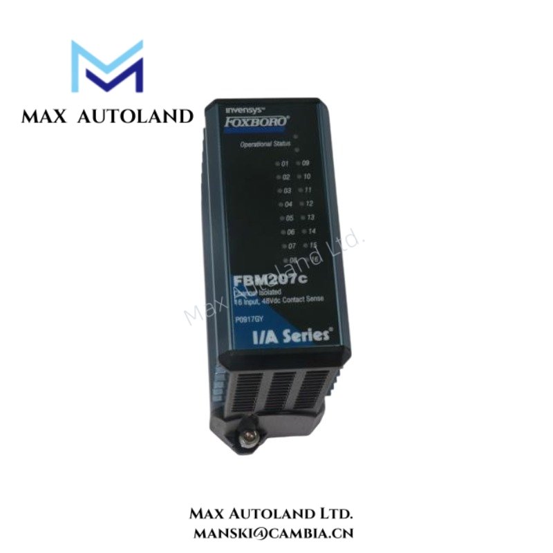 The Foxboro FBM207C P0917GY is a high-precision voltage monitor and contact sense input module designed for the I/A Series. It monitors voltage levels and detects contact signals while maintaining electrical isolation between inputs. Manufactured by Foxboro, this module integrates seamlessly with distributed control systems, providing stable and reliable input readings. Its compact design simplifies installation and conserves panel space without compromising performance.
